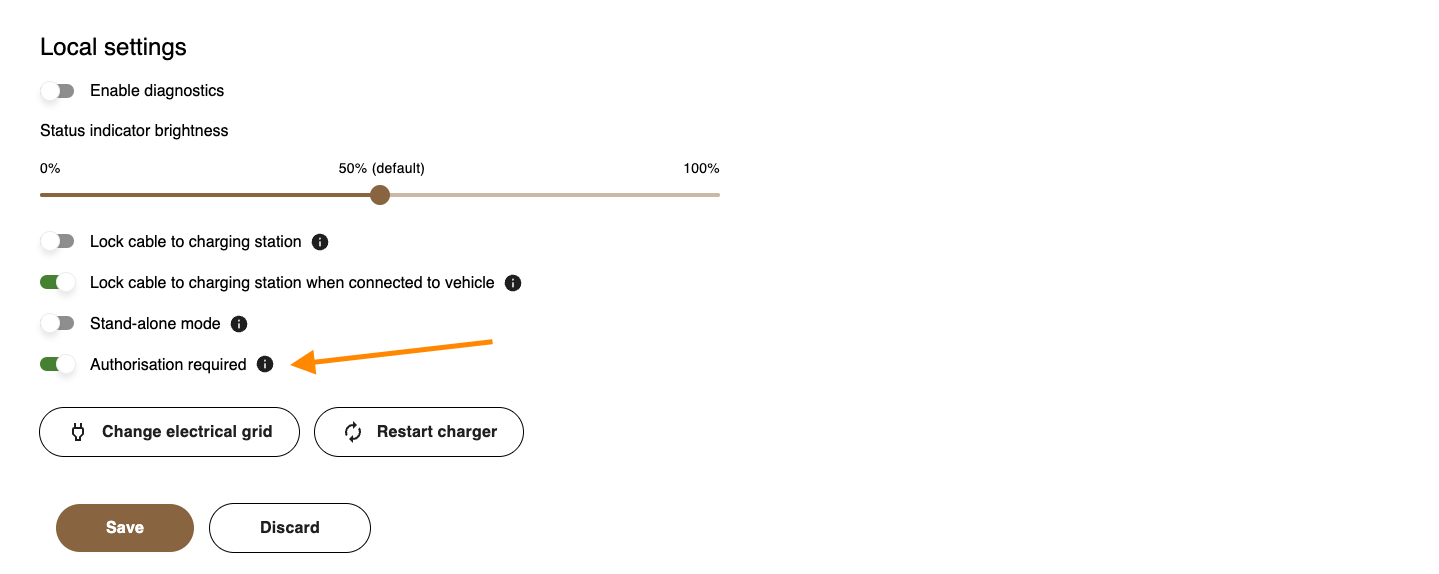 - In Einstellungen unter der Ladestation, schalten Sie Autorisierung erforderlich EIN oder AUS.